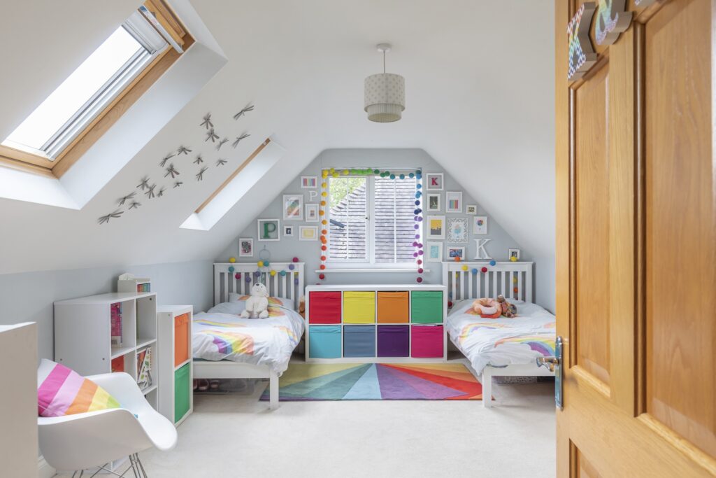 The twins’ room is where my love of rainbows truly started, I loved designing their colourful space and tweaking it over the years. Their new rooms will be very different, they’ve been ready for their own, more grown up spaces for a while. Kalyan is already squatting in the study upstairs while we wait to move!